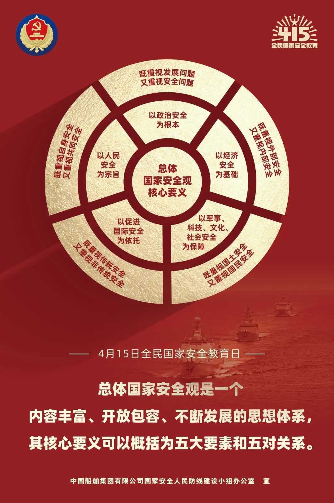 黨的十九屆六中全會(huì)指出,總體國家安全觀涵蓋政治、軍事、國土、經(jīng)濟(jì)、文化、社會(huì)、科技、網(wǎng)絡(luò)、生態(tài)、資源、核、海外利益、太空、深海、極地、生物等諸多領(lǐng)域,要求堅(jiān)定維護(hù)國家政權(quán)安全、制度安全、意識(shí)形態(tài)安全,加強(qiáng)國家安全宣傳教育和全民國防教育,鞏固國家安全人民防線。