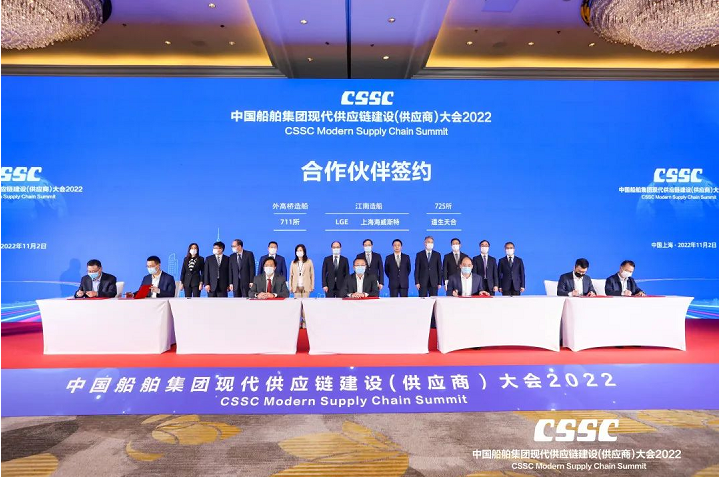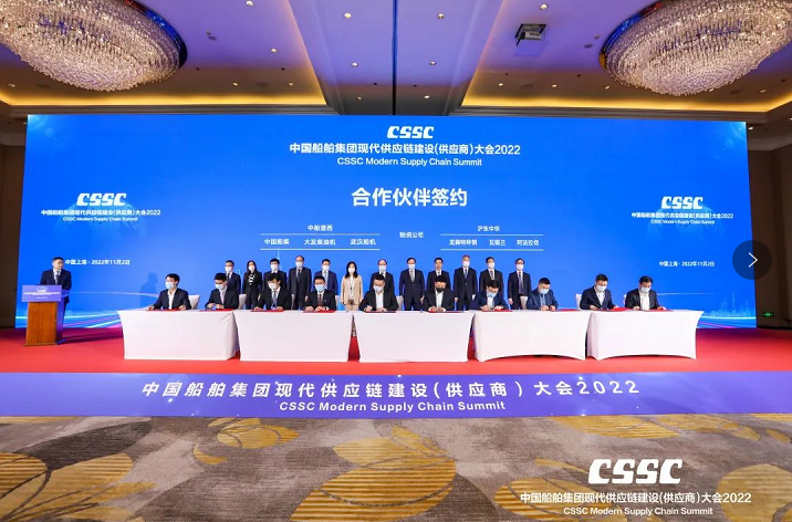 11月2日,中國船舶集團(tuán)有限公司2022現(xiàn)代供應(yīng)鏈建設(shè)(供應(yīng)商)大會在上海舉行。會議旨在貫徹落實(shí)黨的二十大精神,充分發(fā)揮中國船舶集團(tuán)作為中國船舶工業(yè)產(chǎn)業(yè)鏈鏈長的主體支撐和融通帶動作用,打造船舶工業(yè)現(xiàn)代供應(yīng)鏈高端交流平臺,凝聚廣泛共識,深化務(wù)實(shí)合作,服務(wù)國家戰(zhàn)略,共同致力建設(shè)和維護(hù)穩(wěn)定、安全、暢通、高效、可控的全球產(chǎn)業(yè)鏈供應(yīng)鏈體系,共同促進(jìn)產(chǎn)業(yè)的高端化、綠色化和智能化轉(zhuǎn)型,共同引領(lǐng)中國船舶工業(yè)高質(zhì)量發(fā)展,為“造船強(qiáng)國”和上海“五大中心”建設(shè)貢獻(xiàn)中國船舶力量。