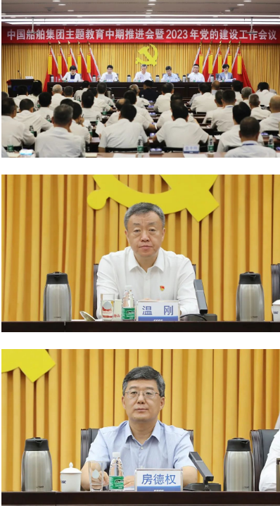 7月5日,中國船舶集團有限公司召開主題教育中期推進會暨2023年黨的建設工作會,深入貫徹落實習近平新時代中國特色社會主義思想和黨的二十大精神,學習貫徹習近平總書記對黨的建設和組織工作的重要指示,總結集團公司黨建工作和主題教育進展情況,部署下一階段重點任務,持續推動主題教育深化、內化、轉化,以高質量黨建引領保障高質量發展。