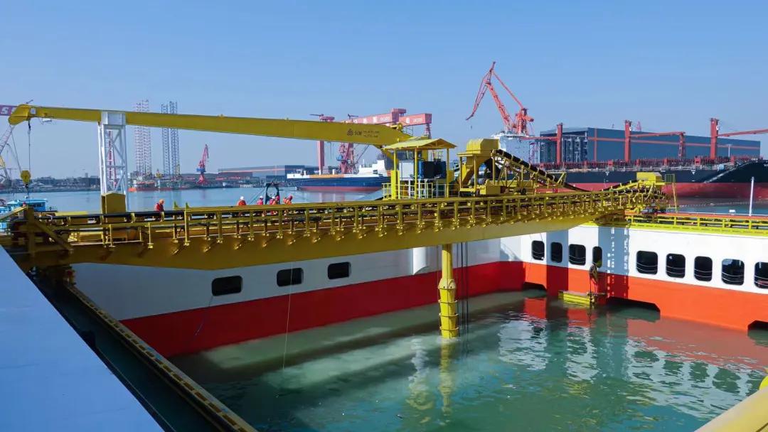 # 首創(chuàng)了“浮式自動(dòng)化輸料母船+坐底整平架”的系統(tǒng)形式;