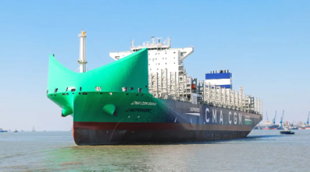 12月7日,由中國船舶集團有限公司旗下滬東中華造船(集團)有限公司聯合中國船舶工業貿易有限公司為法國達飛集團建造的13000TEU液化天然氣(LNG)雙燃料動力大型集裝箱船系列首制船“CMA CGM BAHIA”號,在中船長興造船基地命名交付。這是繼全球首創LNG雙燃料動力23000TEU超大型集裝箱船,滬東中華完工交付的又一款清潔能源集裝箱船,持續鞏固了其在大型、超大型雙燃料動力集裝箱船建造領域領軍企業的地位。