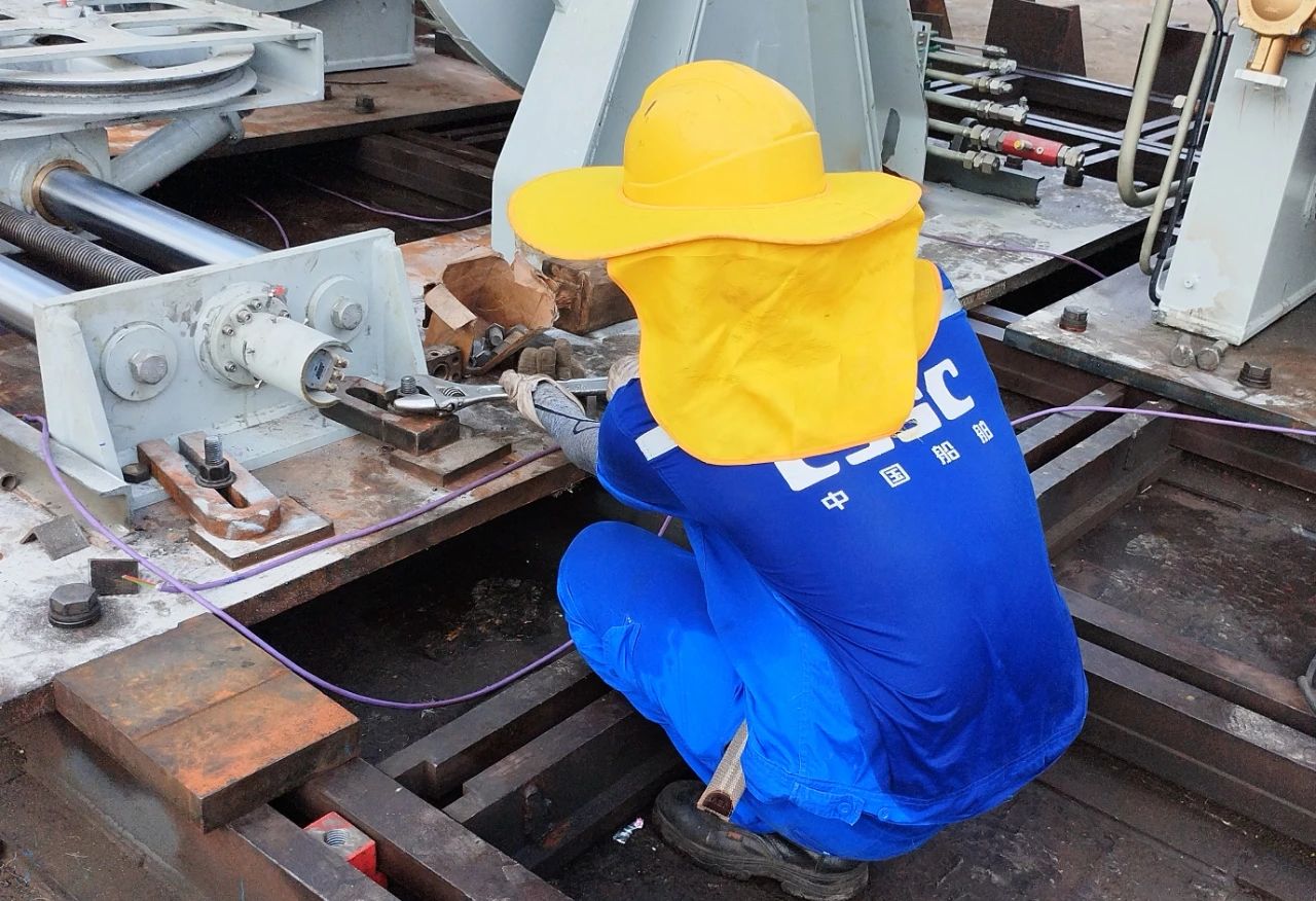 華南船機——員工頭頂烈日、揮汗如雨,戰高溫、保履約,堅持完成多臺海洋平臺起重機、箱式起重機、特種絞車的安裝調試工作。