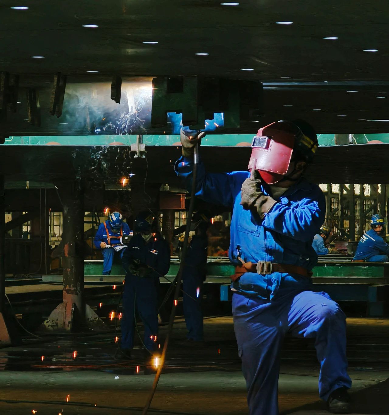 廣船國際——焊工正在開展分段焊接施工。